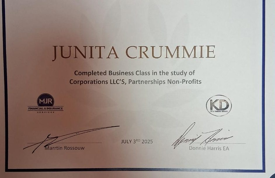 Junita the CEO with over 10 years of experience in the field of taxation. I worked for Liberty Tax prior to starting own company. We are a company that strive ourselves in ethical tax preparation while providing exceptional customer service. Specializing in both Individual, small business and corporate tax returns. We service all 50 states. Junita and her team has a reputation for providing expert tax solutions to meet each unique client need. We will provide our clients service with integrity and ensure that all tax returns are compliant with tax laws. We also offer Bookkeeping, Corp Formation, Tax Planning, Amendments, Tax Consultation, Credit Repair/Consolidation, Business Credit Assist and Business Startups.